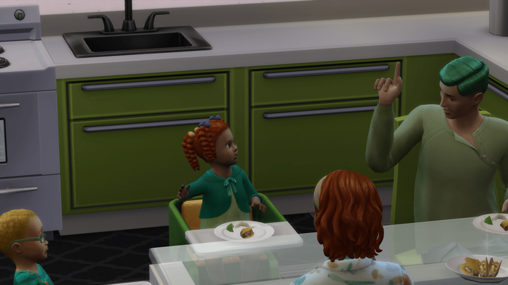 Hunter watched the twins pick apart their fish tacos. Selena liked to break down the crunchy shell and rebuild. A smaller version with the parts she enjoyed. Lettuce piled up on the side of her plate. She pouted cross with her daddy. His tone scolded, as girls grow strong by eating all their dinner. James smacked his hands down, breaking the taco and mushing it together in a sticky mess. He would consume the larger pieces in one gulp. The food would spread over his face, a toothy grin expressing his enjoyment. He lived in the present, savouring each mouthful. James had his father’s features, and a green tint altered the blonde of his hair. Hunter prided himself on creating a mini-version. The thought James would soon have Hunter’s green locks upset Milly. The blonde suited him, and it had her thick curly texture. Hunter wanted James to have everything, including a bedroom he did not have to share. He prayed this pregnancy would bring him a son, another to be in his image. They would need to curb their spending habits to raise the money for a smaller fourth bedroom for Selena. Enough for a bed, wardrobe and another baby. It seemed Hunter planned to prepare their daughter for motherhood. A long way into the future, Hunter envisaged their home filled with grandchildren.